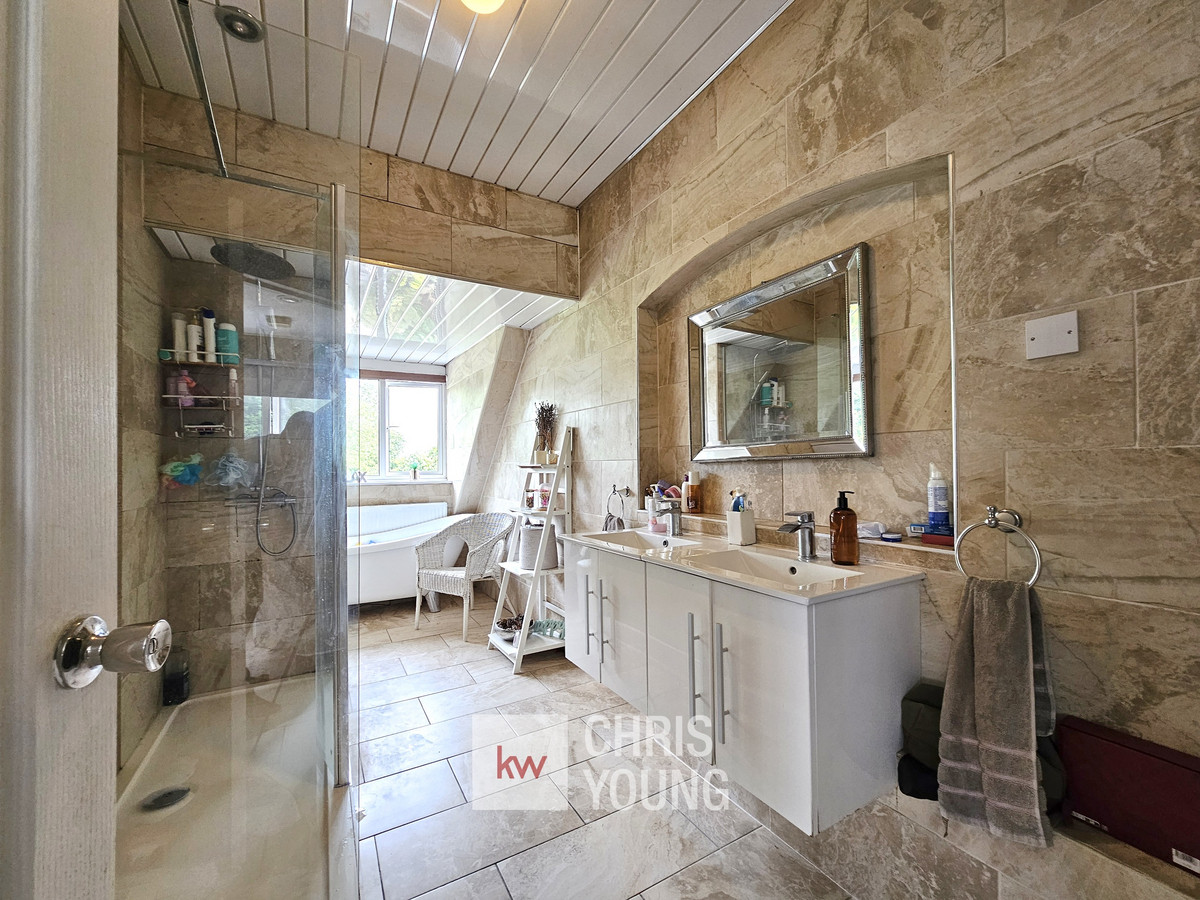 Large principal bedroom with newly fitted en-suite (bath, walk-in shower, basin & WC)