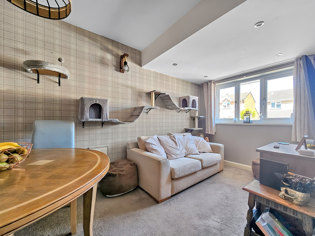 At the rear, the main lounge stretches the full width of the property. With a large picture window and glazed door opening onto the garden, its a bright and social space that feels instantly welcoming. Under the stairs, theres a handy storage cupboard, and the solid flooring keeps things low-maintenance and modern.
